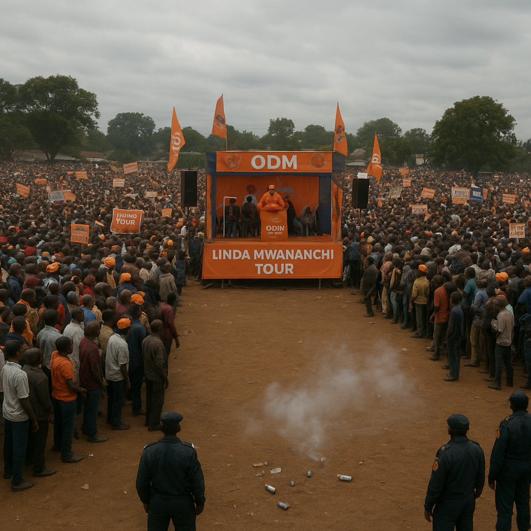 Tension briefly flared when a teargas canister was lobbed into the gathering just as Sifuna took to the stage to address supporters. The incident caused momentary panic, but leaders quickly urged calm and restraint.